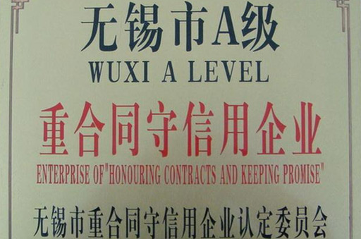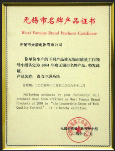 无锡市名牌产品证书